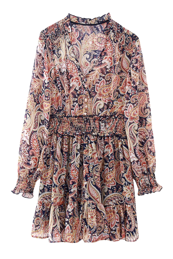 Goodnight Gihpa ‘Sapphire’ V-Neck Paisley Pattern Mini Dress