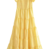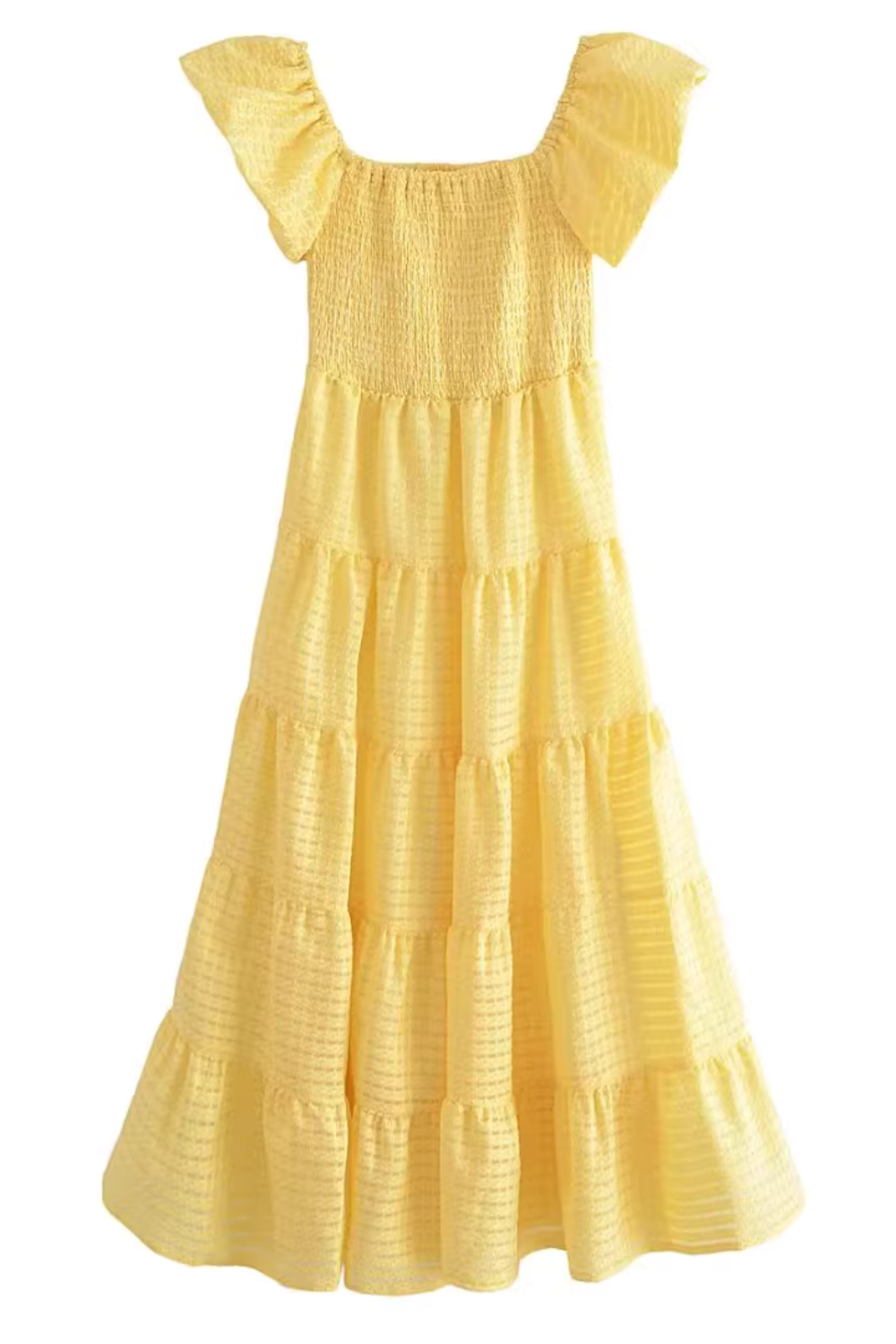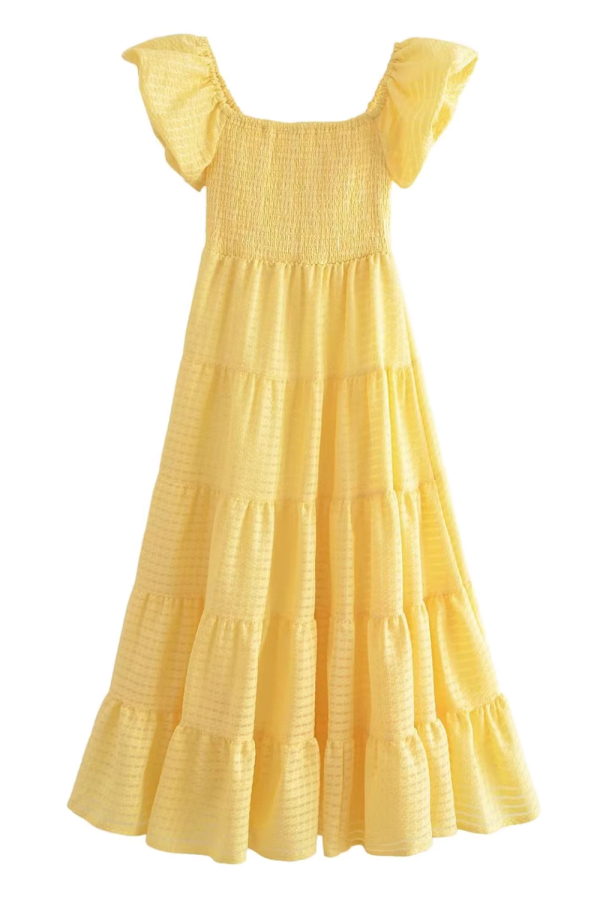 Sapphire’ Square-Neck Ruched Tiered Dress