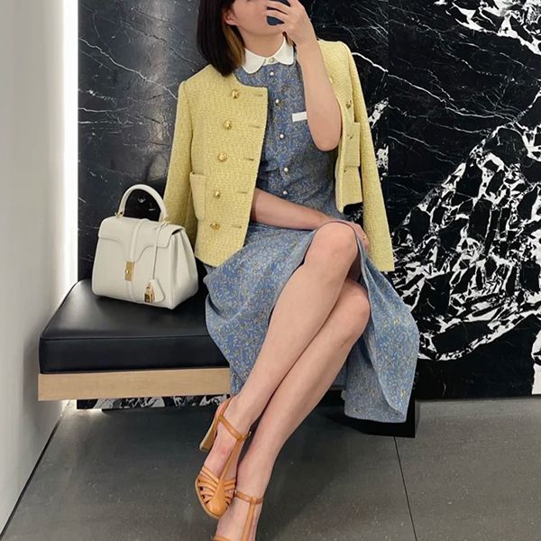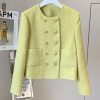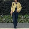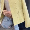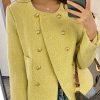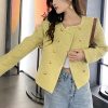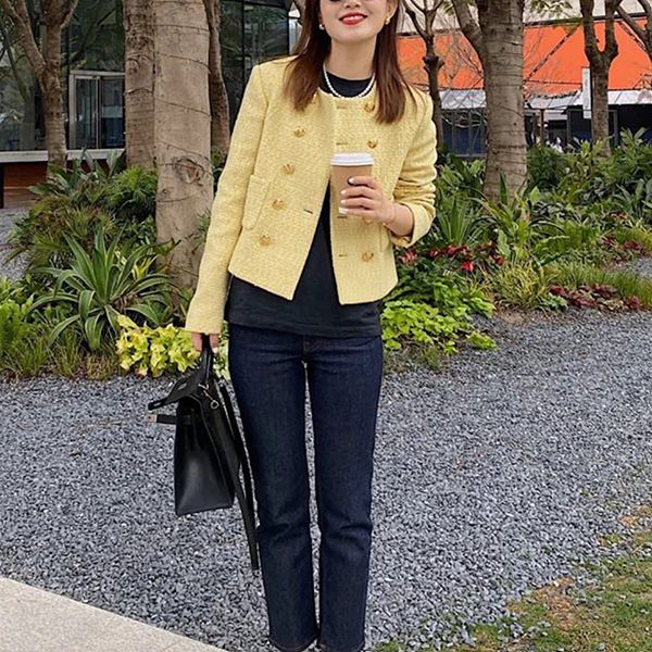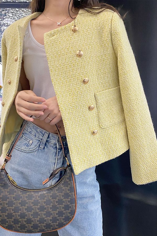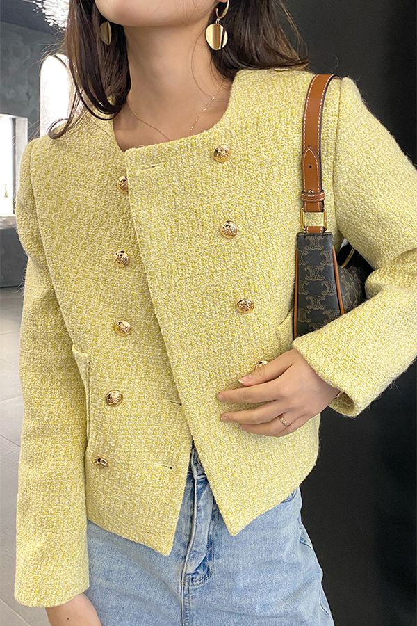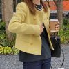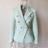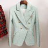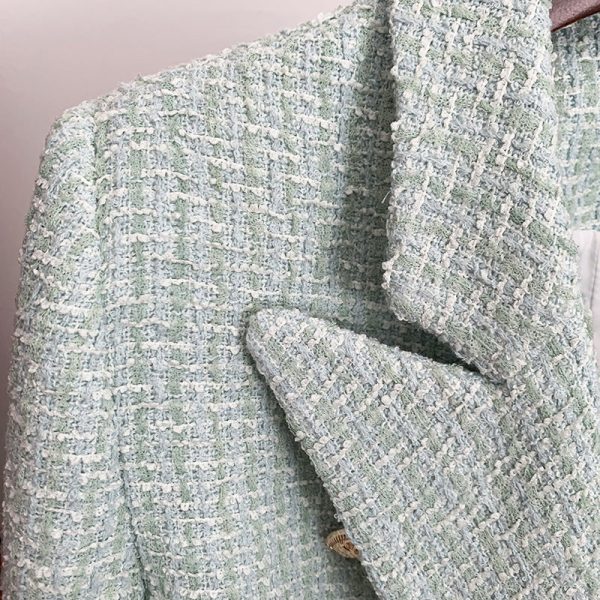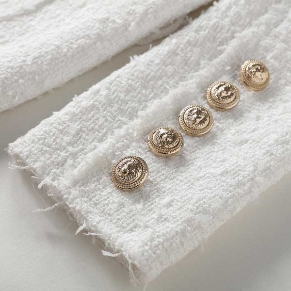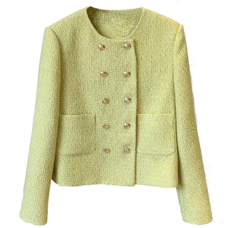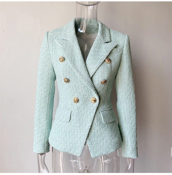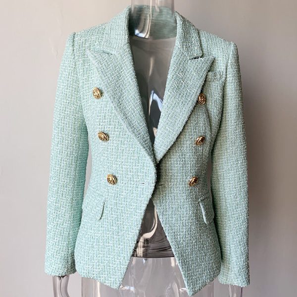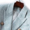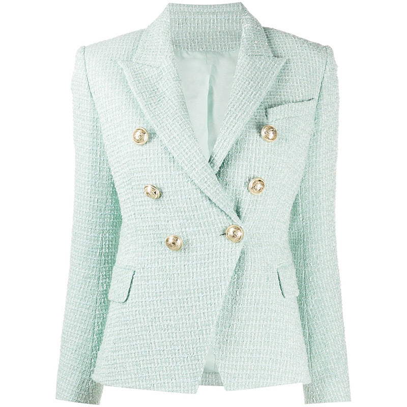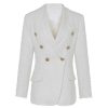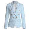 The classic double-breasted blazer for women features cool tough-luxe edge, weaved texture, double breasted button closure, 2 front flap pockets, embossed glossy golden metal hardware and classic lapel collar. This womens casual blazer suit jacket is of fasion design and oversized fit, liadies blazer jacket for any body type, for jeans & pants and for any official events & casual outfits.